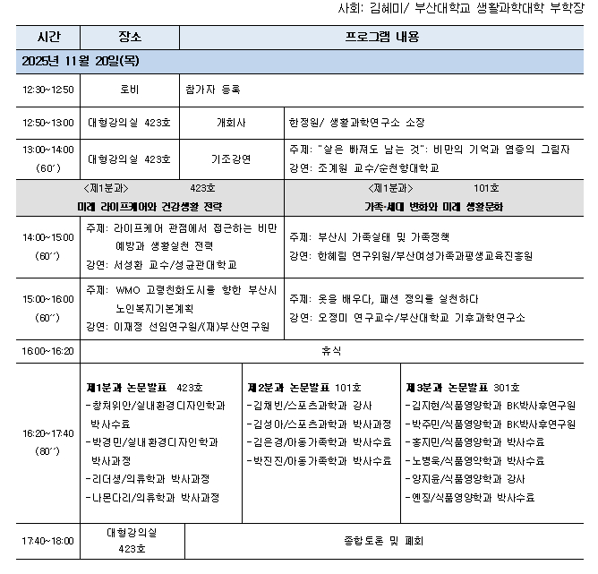 부산대학교 생활과학연구소에서는 다음과 같이 2025 추계학술대회를 개최하오니 많은 참석 바랍니다.